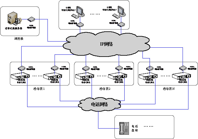 系统采用局域网网络管理方式,支持TCP/IP协议,通过以太网连接客户端(查询终端)和网管服务器设备。查询终端可以对记录仪进行实时监听,远程查询记录仪录音内容,远程下载记录仪录音数据,下载的录音数据可以在查询终端进行查询和播放,多台查询终端可同一时间查询同一条信息,而且不影响记录仪的正常录音。网管服务器可以对记录仪进行远程管理,设置记录仪权限,并定时对记录仪进行时钟校准,对记录仪进行不间断实时监测,并生成工作日志、告警记录、操作记录。